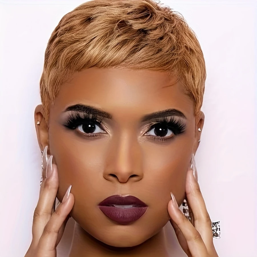 Perruque Mia : Élégance avec la coupe pixie blonde miel