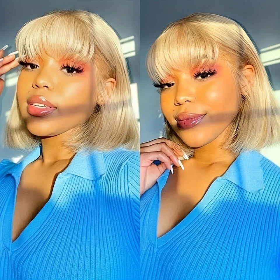 Pourquoi choisir la Perruque cheveux naturels lisses coupe carrée bob avec frange blonde – Amina?