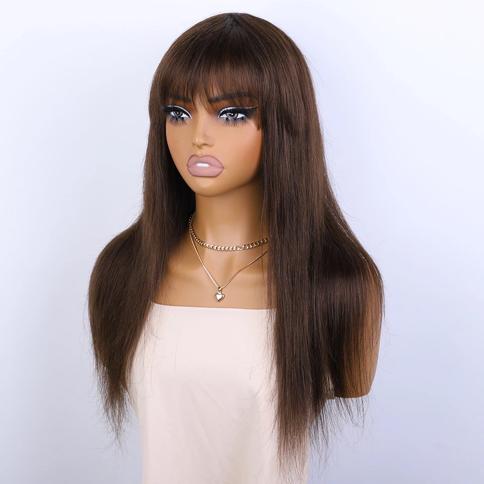 Perruque cheveux naturels lisses marron – Ada, un choix élégant pour toutes occasions